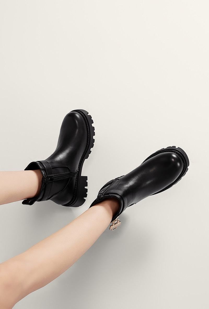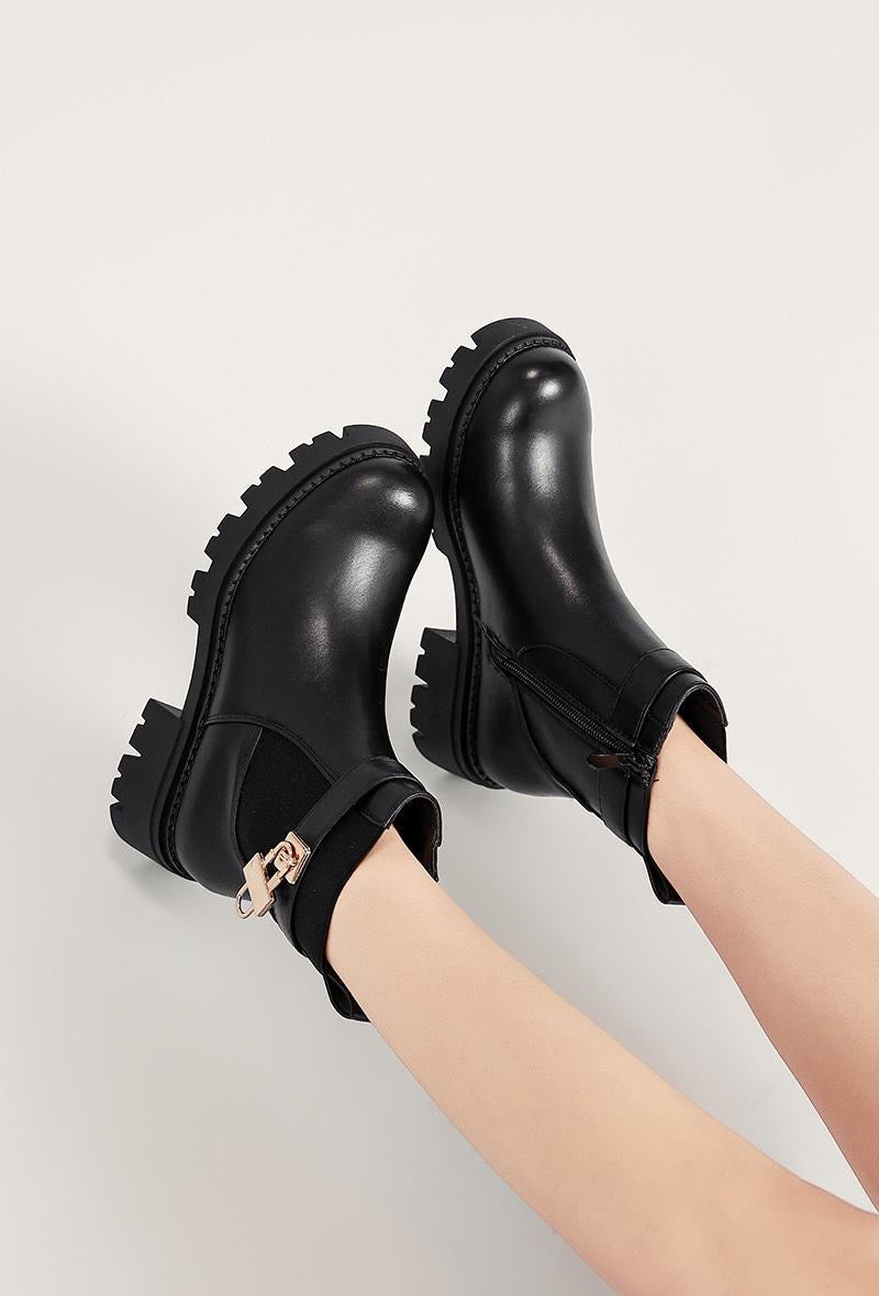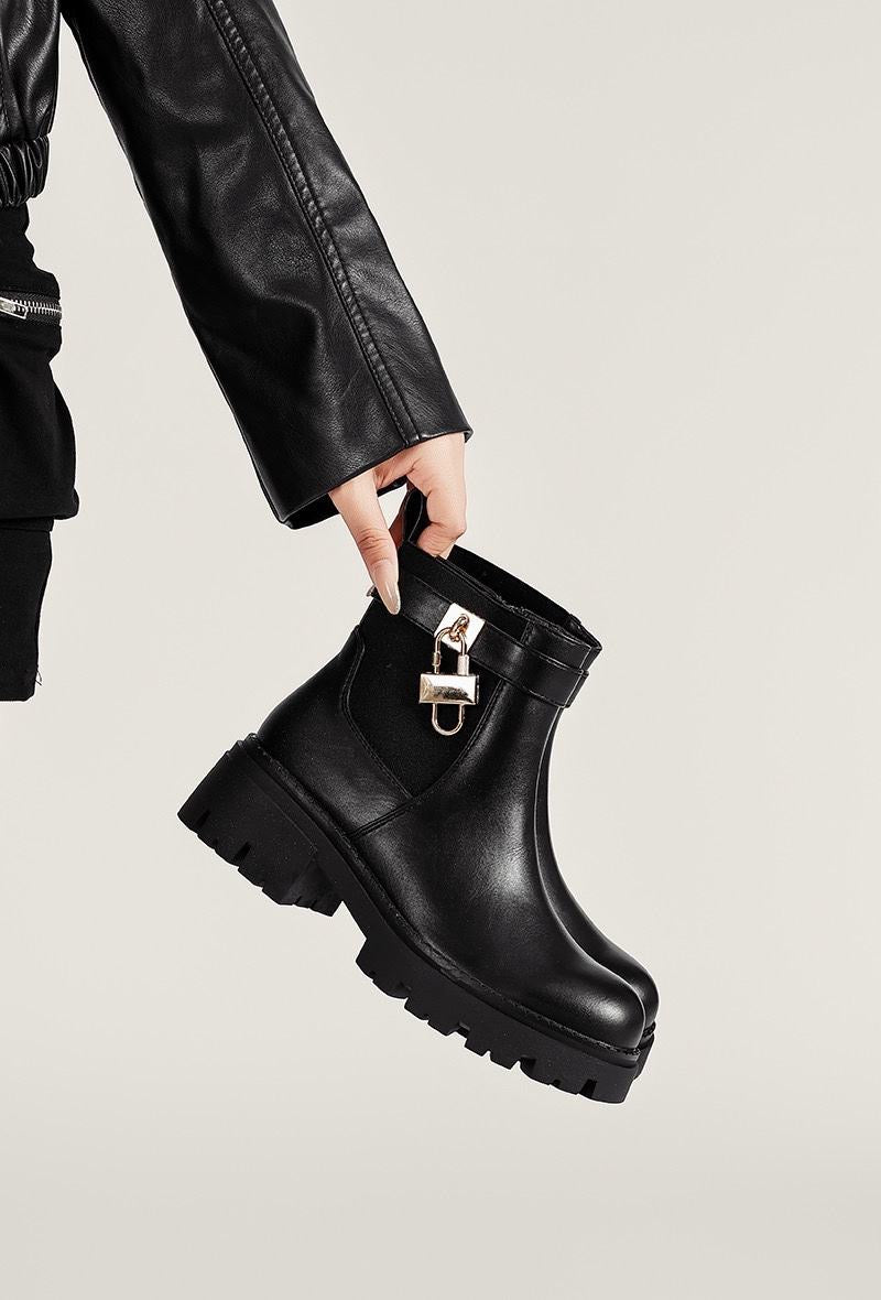 Ontdek de Cleo enkellaars: een stijlvolle en comfortabele laars die perfect is voor het najaar en de winter. Deze trendy enkellaars combineert een stoer design met een vrouwelijke touch dankzij het gouden slotdetail.